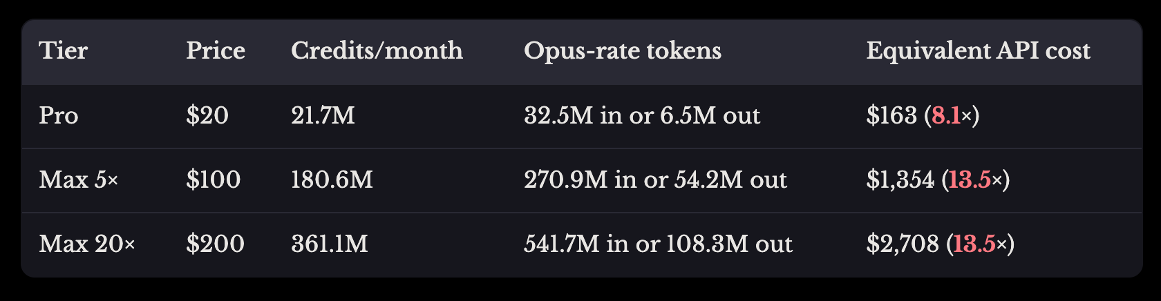Según un estudio (de un investigador random, debo admitir) un usuario que paga 200$ al mes puede gastar el equivalente a 2.700$ en peticiones a la API.