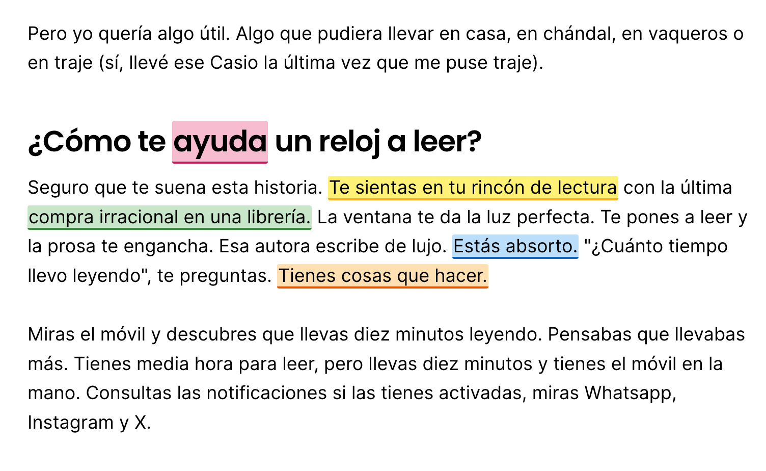 Para esta investigación he impreso bastantes artículos (unos cien folios de frikis hablando de IA), así que he ido subrayando cosas a mano. Pero muchos de los artículos han sido de consulta rápida: buscas una información y detectas una idea general que quieres destacar. No necesitas más de ese artículo, pero te interesa esa cita. Para esas ocasiones viene bien poder subrayar cosas en el ordenador, directamente desde el navegador.