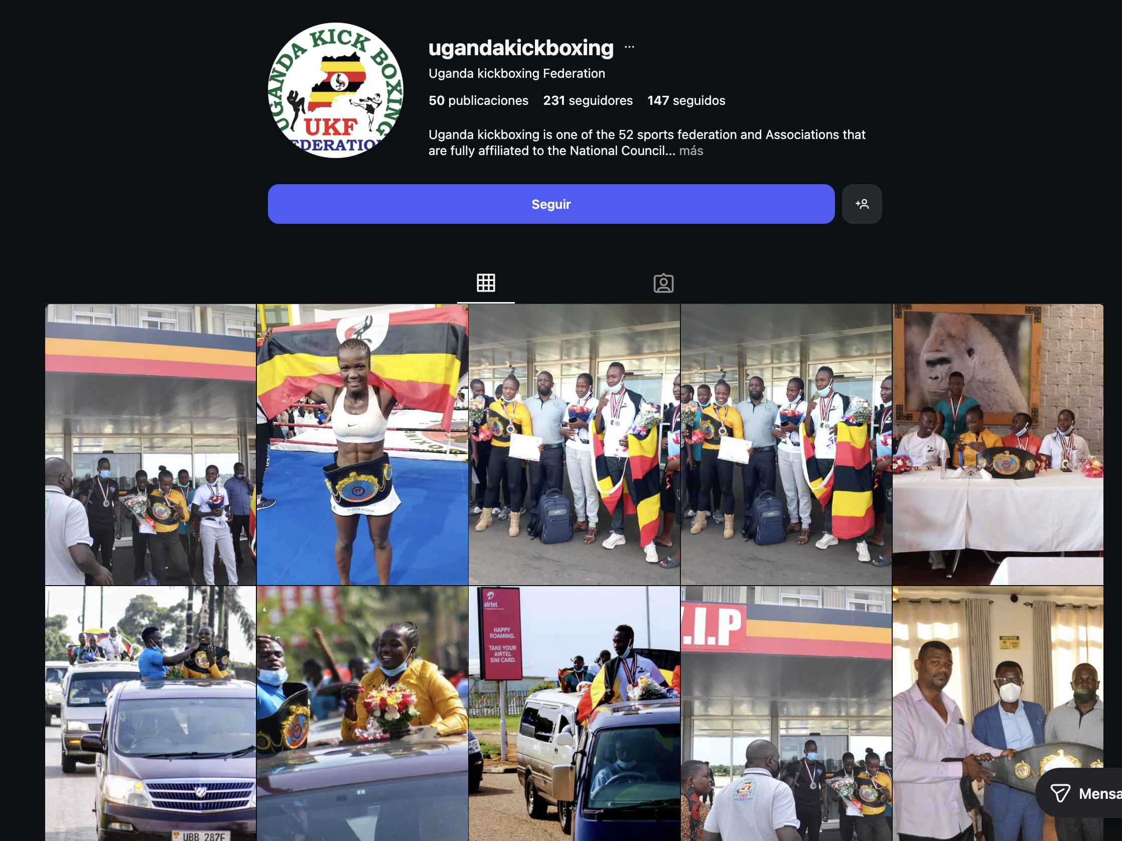 - Realmente existe otra cuenta llamada Uganda Kick Boxing Federation (bien escrita), es más antigua y parece la oficial porque en lugar de niños entrenando descalzos sobre piedras, aparece una selección bastante más formal. Eso sí, como no hay niños peleando sobre piedras no hay vídeos virales y, por lo tanto, tiene menos seguidores.