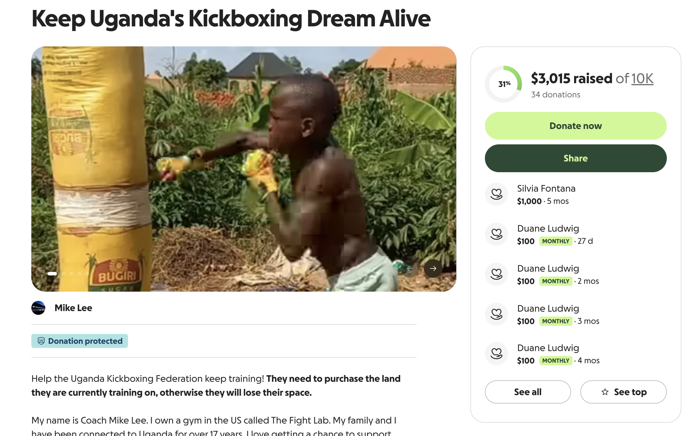 - HAY UN TERCER GOFUNDME. Esta vez también es, supuestamente, para la escuela de kickboxing, pero lo organiza un tal Mike Lee.