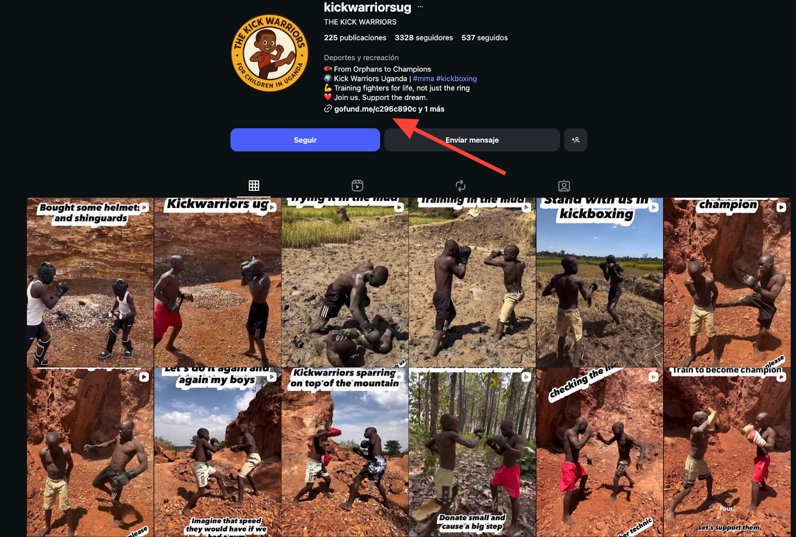 El Instagram se llama Mugoya Kickboxing, y en su biografía podemos encontrar un enlace a gofund.me, una página donde podemos donar dinero para que los niños sigan entrenando.