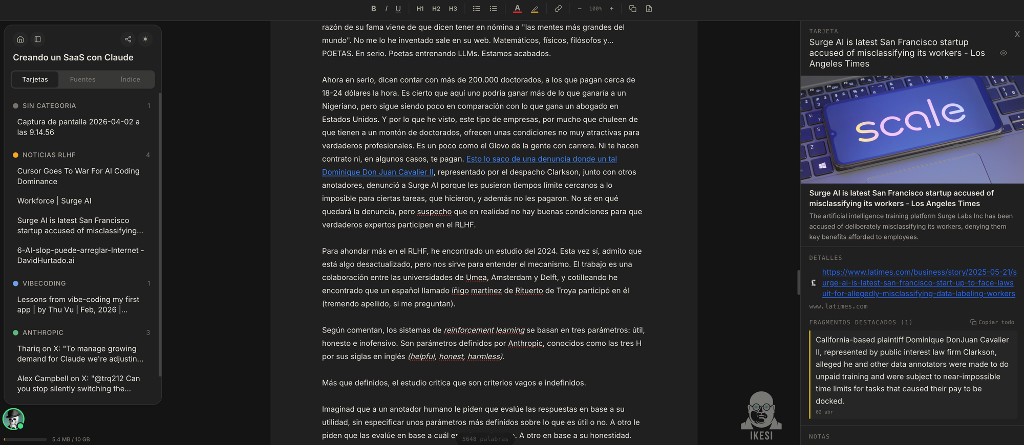 Ya sabéis que el mes pasado pude crear una extensión para subrayar artículos y páginas webs en cuestión de minutos. Pero esta vez quiero crear un software de verdad. Con registro de usuarios, suscripciones, almacenamiento, colaboración en tiempo real, comunidad y, para que tengáis un adelanto, un procesador de texto diseñado a medida de mis necesidades en el que estoy redactando ahora mismo este texto.