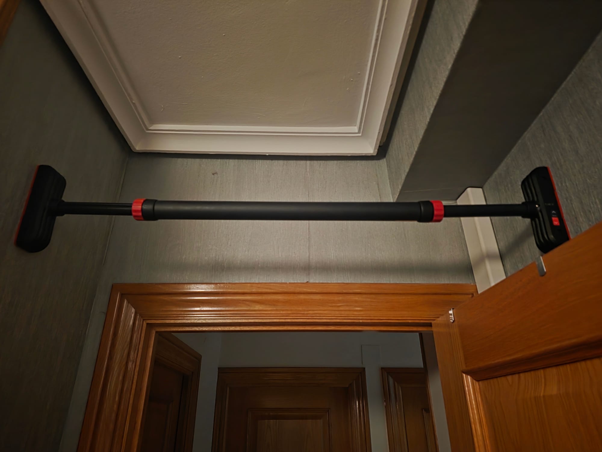 Me he comprado una barra de dominadas a presión. La he puesto de pared a pared, ya que antaño tuve otra que puse en el marco de una puerta y la deformación a lo largo de los años fue histórica. Lo siento amatxo. Esta vez mi plan es hacer muchas dominadas a lo largo de todo el día. Mi teoría es que si me pongo a hacer dominadas en un entrenamiento puedo hacer 20. Pero si las hago a lo largo del día podría hacer... No sé. ¿50? Quiero experimentar a meter mucho volumen todos los días en lugar de buscar el fallo. No busco hipertrofia, busco rendimiento. Os comentaré los resultados. La barra son 30 pavos.