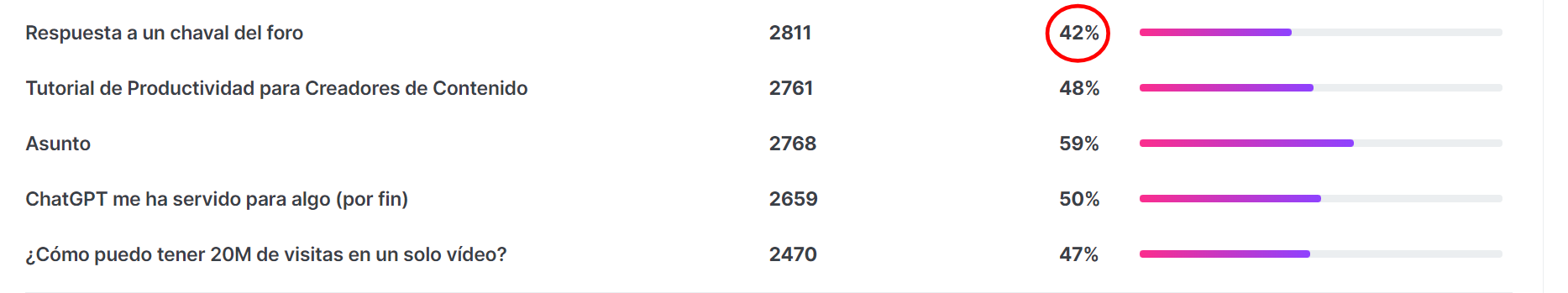 El porcentaje que veis ahí es el "open rate", o cuántos de los que estáis suscritos habéis abierto cada correo.